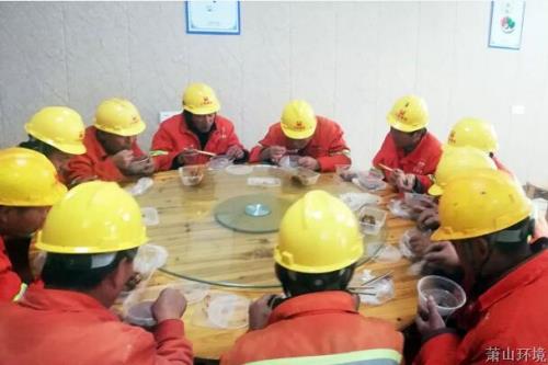 下昼13时,妇女代表们分组前往集团在建工地、供排水抢修前线、水厂等地方,把冬至吃食麻团和粥,逐一送到一线职工手中,对他们的辛勤支付体现谢谢,并送去节日的问候。