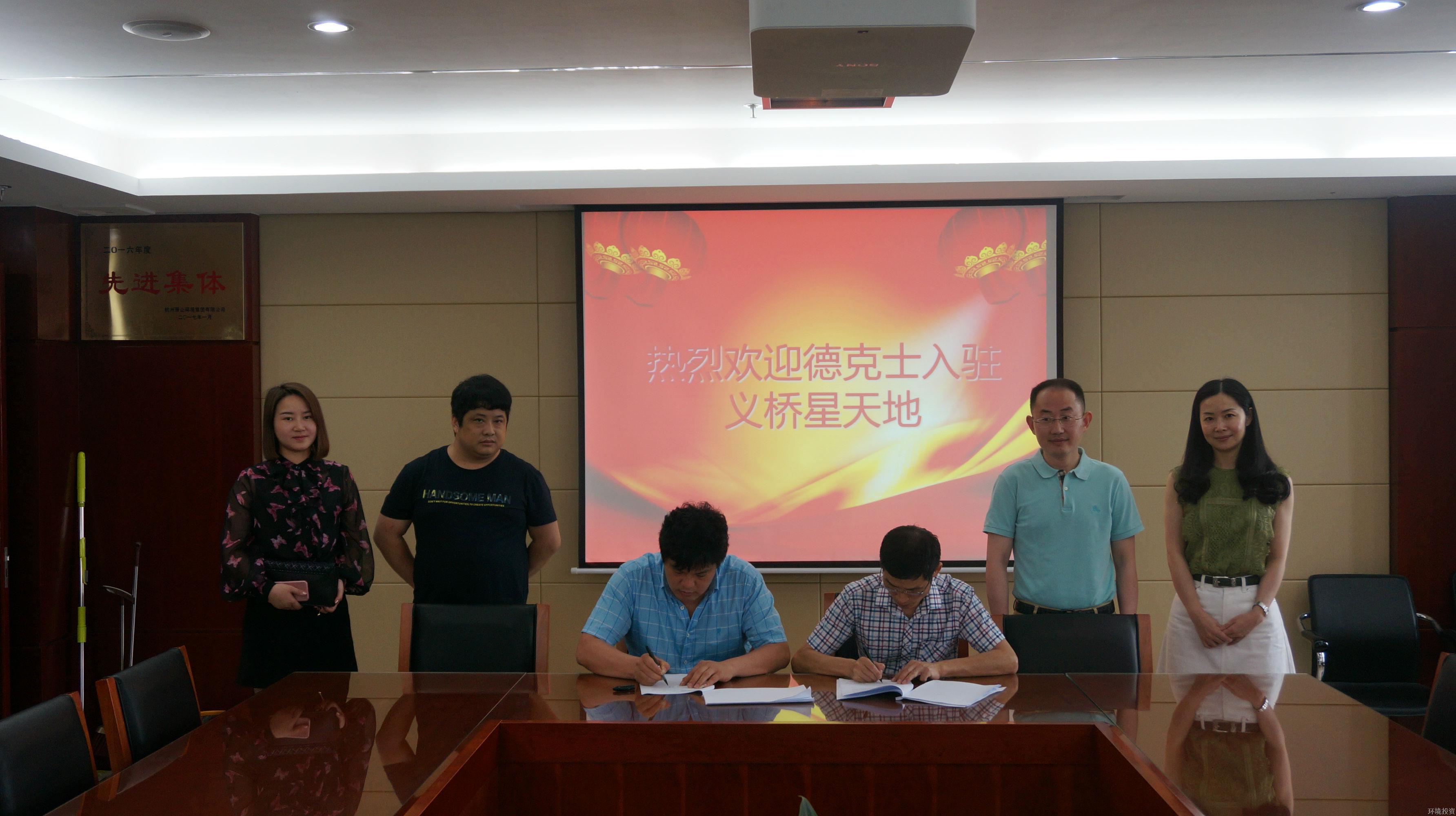 2017年6月19日,德克士正式入驻义桥星天地的签约仪式在投资公司聚会室举行。投资公司副司理徐清静与德克士代表签署了租赁条约,公司司理江峰、副司理刚蕊加入签约仪式。