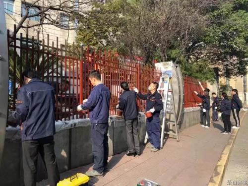 自愿效劳美情形。连系“不忘初心 切记使命”主题教育党员自愿效劳要求,萧水物业党支部组织全体党员、入党起劲份子、团员青年主干一起下手对水务大厦南门护栏举行刷漆,配合点亮大厦情形。