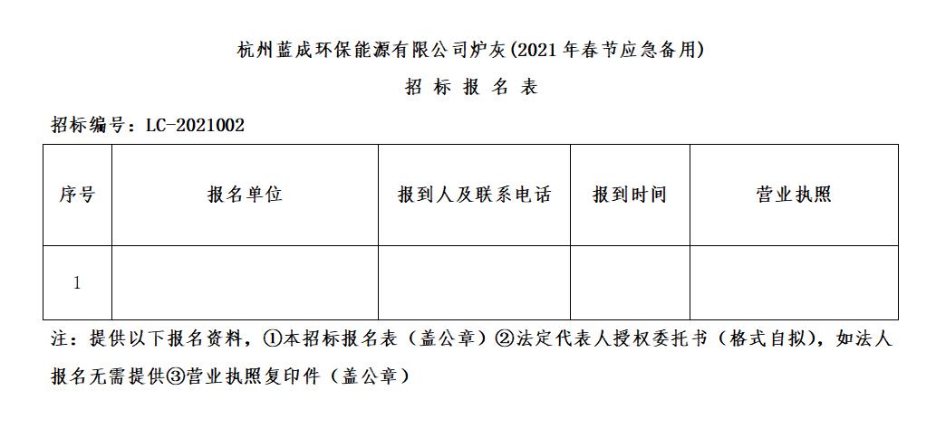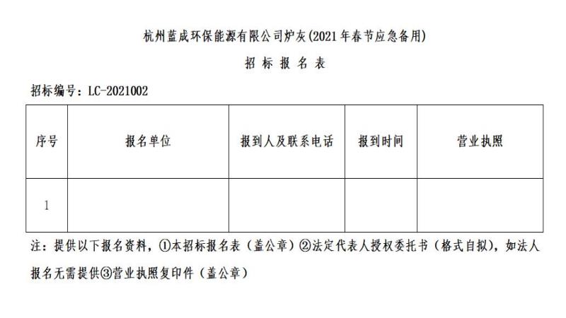 ¶þ¡¢ÕбêÏîÄ¿£ºº¼ÖÝÀ¶³É»·±£ÄÜÔ´ÓÐÏÞ¹«Ë¾Â¯»Ò(2021Äê´º½ÚÓ¦¼±±¸ÓÃ)¡£