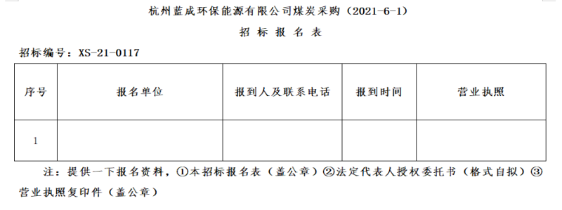 ¶þ¡¢ÕбêÏîÄ¿£ºº¼ÖÝÀ¶³É»·±£ÄÜÔ´ÓÐÏÞ¹«Ë¾ÃºÌ¿²É¹º(2021-6-1) ¡£