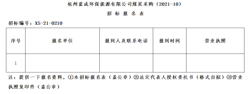 ¶þ¡¢ÕбêÏîÄ¿£ºº¼ÖÝÀ¶³É»·±£ÄÜÔ´ÓÐÏÞ¹«Ë¾ÃºÌ¿²É¹º(2021-10)¡£