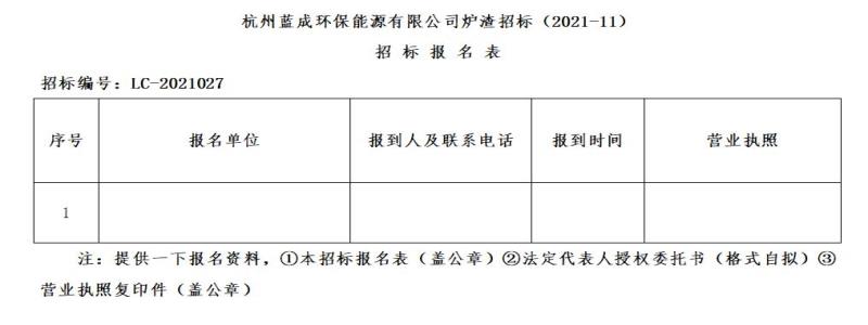 Ò»¡¢ÕÐ ±ê ÈË£ºº¼ÖÝÀ¶³É»·±£ÄÜÔ´ÓÐÏÞ¹«Ë¾£¬Õбê±àºÅ£ºLC-2021027 ¡£