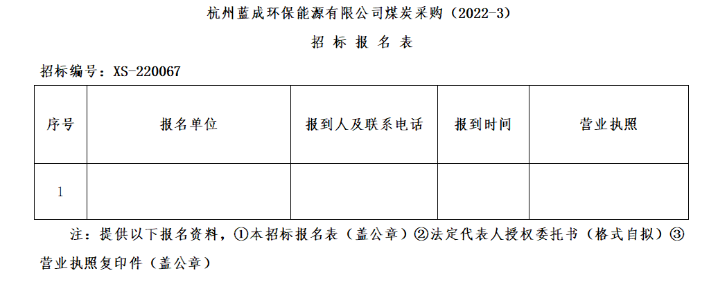 ¶þ¡¢ÕбêÏîÄ¿£ºº¼ÖÝÀ¶³É»·±£ÄÜÔ´ÓÐÏÞ¹«Ë¾ÃºÌ¿²É¹º(2022-3)¡£