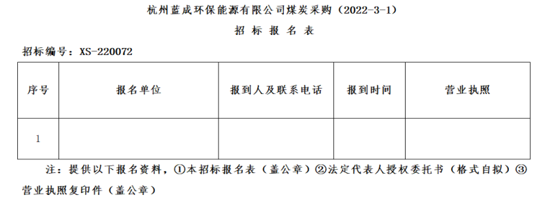 ¶þ¡¢ÕбêÏîÄ¿£ºº¼ÖÝÀ¶³É»·±£ÄÜÔ´ÓÐÏÞ¹«Ë¾ÃºÌ¿²É¹º(2022-3-1)¡£