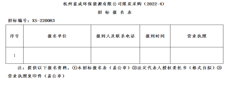¶þ¡¢ÕбêÏîÄ¿£ºº¼ÖÝÀ¶³É»·±£ÄÜÔ´ÓÐÏÞ¹«Ë¾ÃºÌ¿²É¹º(2022-4)¡£