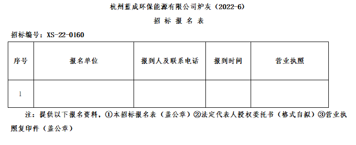 Ò»¡¢ÕÐ ±ê ÈË£ºº¼ÖÝÀ¶³É»·±£ÄÜÔ´ÓÐÏÞ¹«Ë¾£¬Õбê±àºÅ£ºXS-22-0160¡£