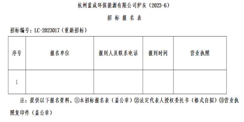 凭证杭州AG真人国际官方网站情形投资建设集团有限公司物资招标治理要求,杭州蓝成环保能源有限公司对“杭州蓝成环保能源有限公司炉灰(2023-6)”举行果真招标。