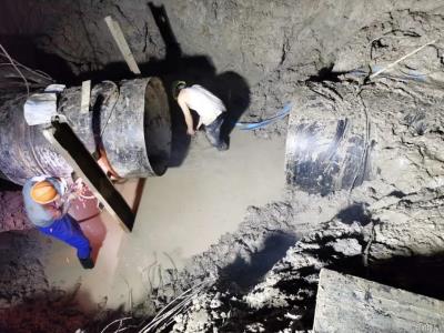 大雨中的坚守 供水公司圆满完成DN1200原水管割接使命
