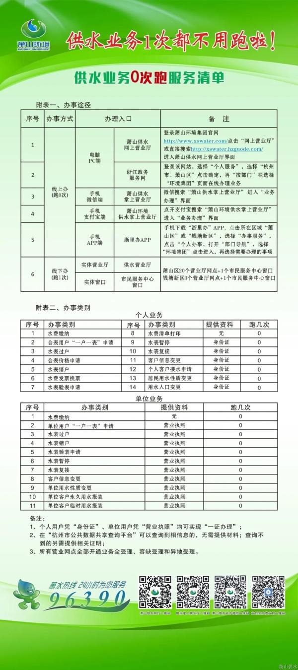 为一直提高AG真人国际官方网站黎民的用水效劳知足度,供水公司认真贯彻落实“最多跑一次”刷新和优化营商情形的要求,制订了供水营业0次跑效劳清单,包括14项小我私家营业、11项单位营业。