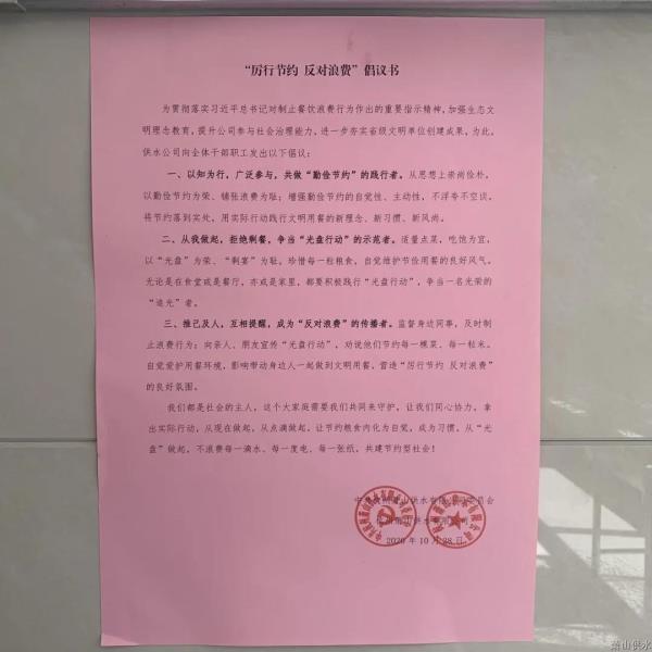 为贯彻落实习近平总书记对阻止餐饮铺张行为作出的主要指示精神,充分验展党员干部的模范带举措用,教育指导全体职工及身边人“厉行节约、阻挡铺张”,供水公司党委组织开展“厉行节约守粮心”系列运动,让每一位职工都能争做节约粮食的“光盘干饭人”!