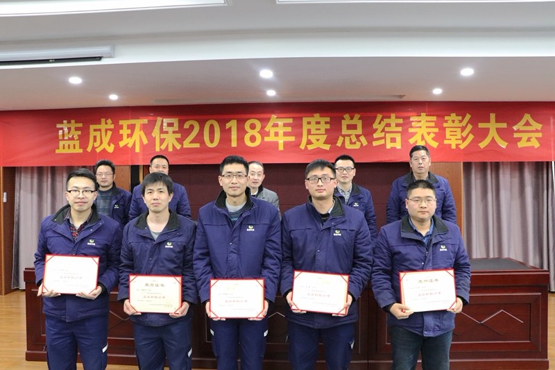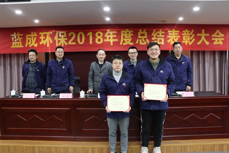 2018年蓝成环保由基建转入运营,以“清静生产、达标排放、提质增效”为抓手,各项事情平稳有序开展,取得了可喜的效果,涌现了一大批头脑先进、事情先锋、作风务实的先进整体和小我私家。先进整体和先进小我私家上台接受了表扬。