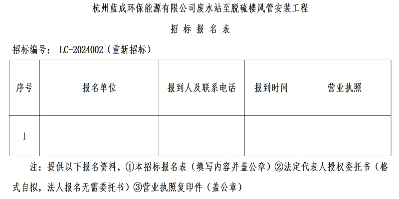 Ò»¡¢ÕÐ ±ê ÈË£ºº¼ÖÝÀ¶³É»·±£ÄÜÔ´ÓÐÏÞ¹«Ë¾£¬Õбê±àºÅ£º LC-2024002£¨ÖØÐÂÕб꣩