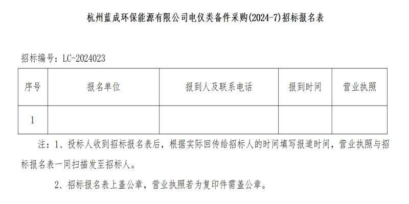 一、招标人:杭州蓝成环保能源有限公司,招标编号:LC-2024023。
