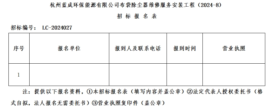 ¶þ¡¢ÕбêÏîÄ¿£ºº¼ÖÝÀ¶³É»·±£ÄÜÔ´ÓÐÏÞ¹«Ë¾²¼´ü³ý³¾Æ÷άÐÞЧÀÍ×°Öù¤³Ì£¨2024-8£©