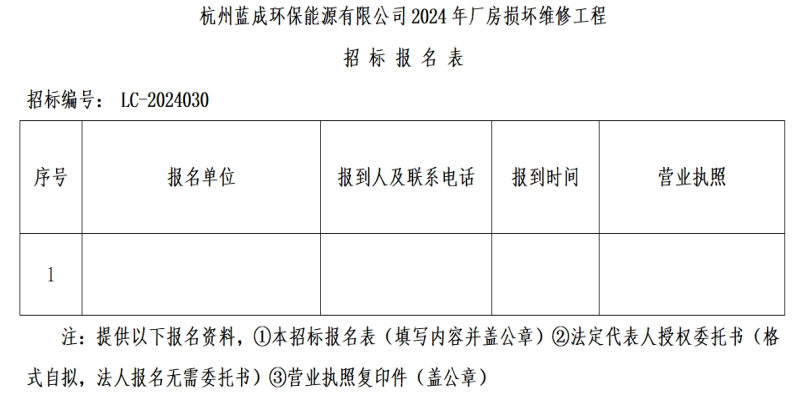 ¶þ¡¢ÕбêÏîÄ¿£ºº¼ÖÝÀ¶³É»·±£ÄÜÔ´ÓÐÏÞ¹«Ë¾2024Äê³§·¿Ëð»µÎ¬ÐÞ¹¤³Ì