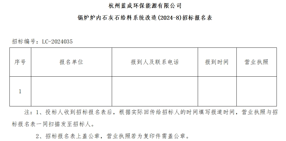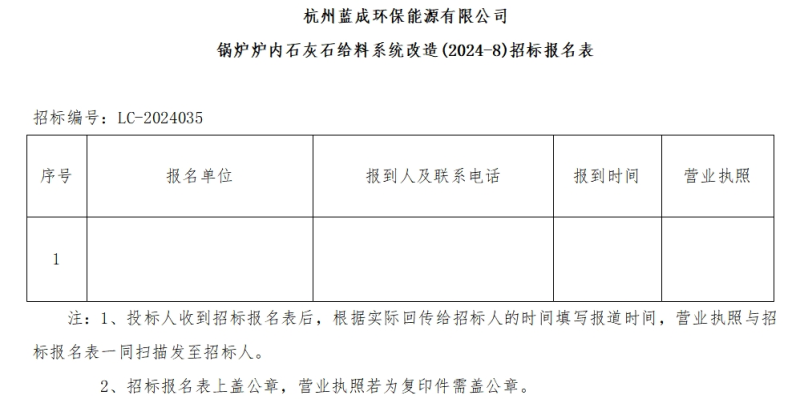 ¶þ¡¢ÕбêÏîÄ¿£ºº¼ÖÝÀ¶³É»·±£ÄÜÔ´ÓÐÏÞ¹«Ë¾¹øÂ¯Â¯ÄÚʯ»Òʯ¸øÁÏϵͳˢÐÂ(2024-8)¡£
