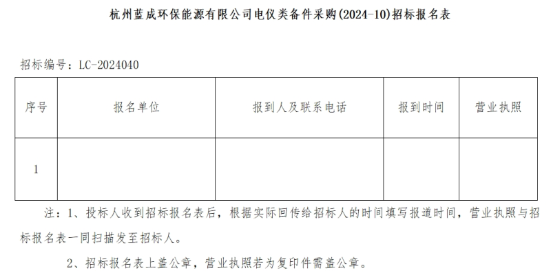 Ò»¡¢ÕбêÈË£ºº¼ÖÝÀ¶³É»·±£ÄÜÔ´ÓÐÏÞ¹«Ë¾£¬Õбê±àºÅ£ºLC-2024040¡£