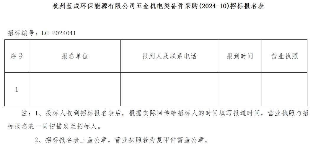 Ò»¡¢ÕР±ê ÈË£ºº¼ÖÝÀ¶³É»·±£ÄÜÔ´ÓÐÏÞ¹«Ë¾ £¬Õбê±àºÅ£ºLC-2024041 ¡£