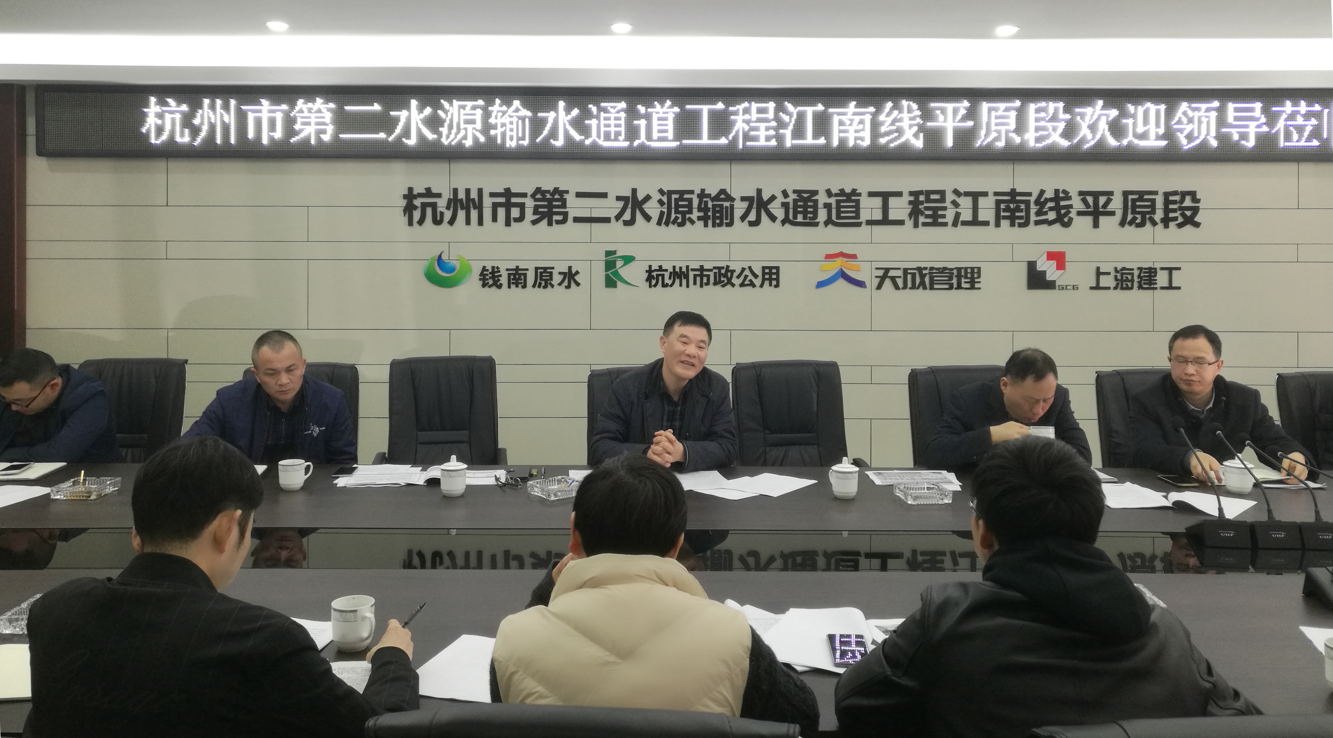 2019年3月12日上午,杭州钱南原水有限公司董事长胡妙生到江南线现场调研召开项目专题推进会,钱南公司副司理余国军、代建单位副总司理柯鹤新陪同调研,江南线山岭段清静原段的施工单位和监理单位加入聚会。