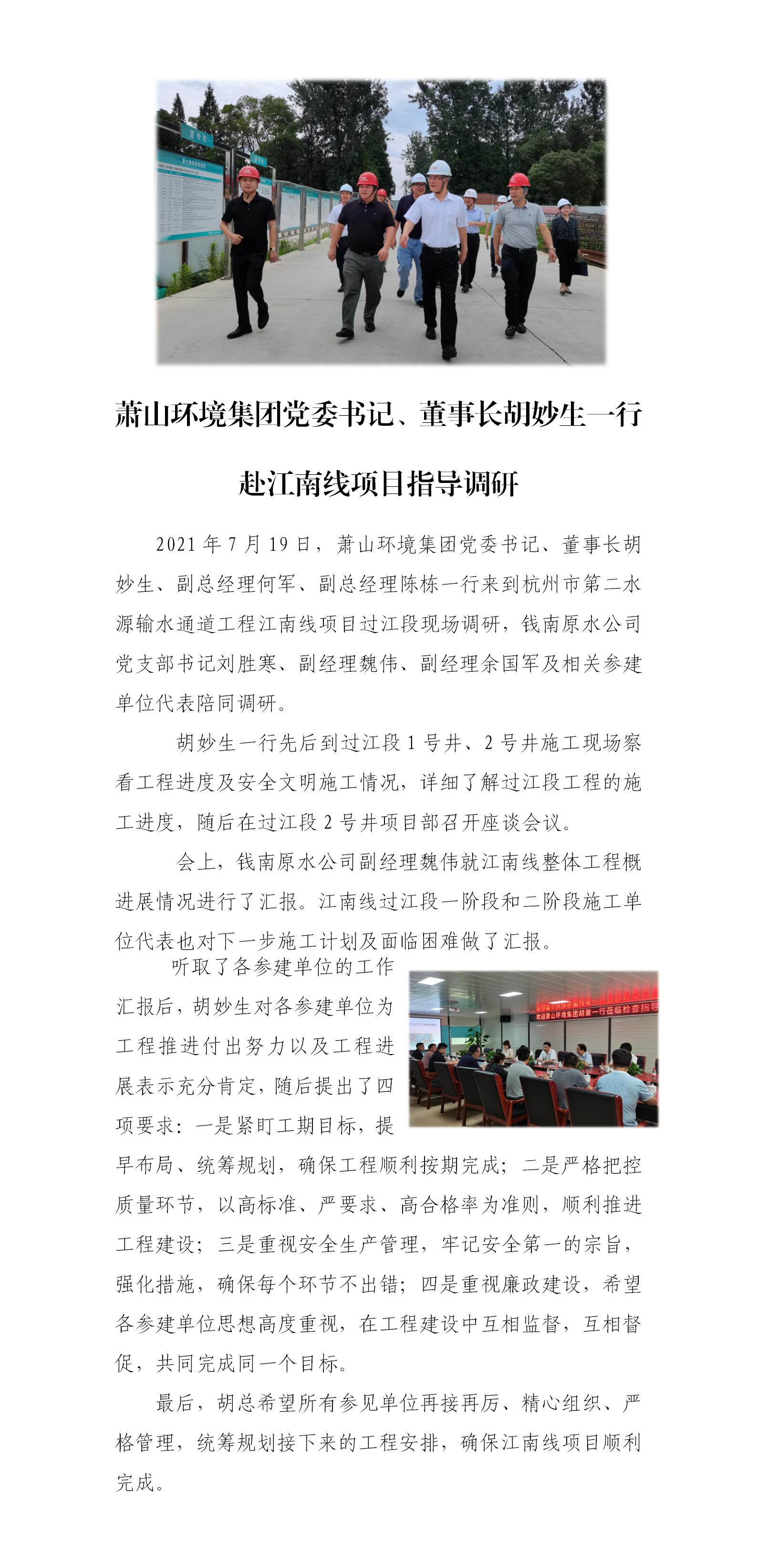 AG真人国际官方网站情形集团党委书记、董事长胡妙生一行 赴江南线项目指导调研