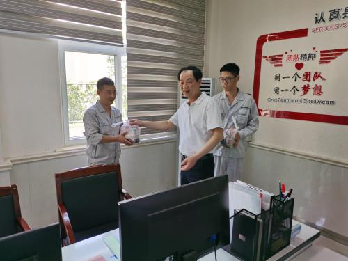 随后 ,董事长韩国华亲热探望班组员工 ,为奋战在一线的宽大职工送上慰问品 ,同时嘱咐职工在事情岗位上一定要注重劳逸连系 ,科学合理安排事情 ,落实防暑降温顺清静生产步伐。