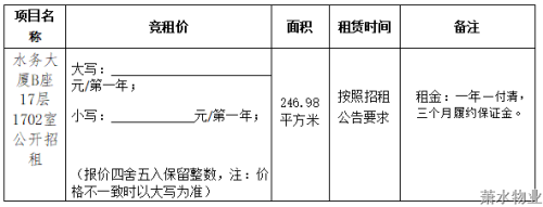 ¡¡¡¡ËµÃ÷£ºÍ¶±êÕß±¨¼Û¾ùÊÓΪµÚÒ»Äê×â½ð¼ÛÇ®£¬¶Ô±êµÄÆäËûÌõ¿îÌåÏÖÈϿɡ£