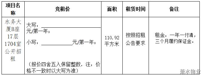 ¡¡¡¡ËµÃ÷£ºÍ¶±êÕß±¨¼Û¾ùÊÓΪµÚÒ»Äê×â½ð¼ÛÇ®£¬¶Ô±êµÄÆäËûÌõ¿îÌåÏÖÈϿɡ£