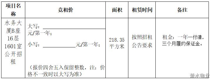 ¡¡¡¡ËµÃ÷£ºÍ¶±êÕß±¨¼Û¾ùÊÓΪµÚÒ»Äê×â½ð¼ÛÇ®£¬¶Ô±êµÄÆäËûÌõ¿îÌåÏÖÈϿɡ£